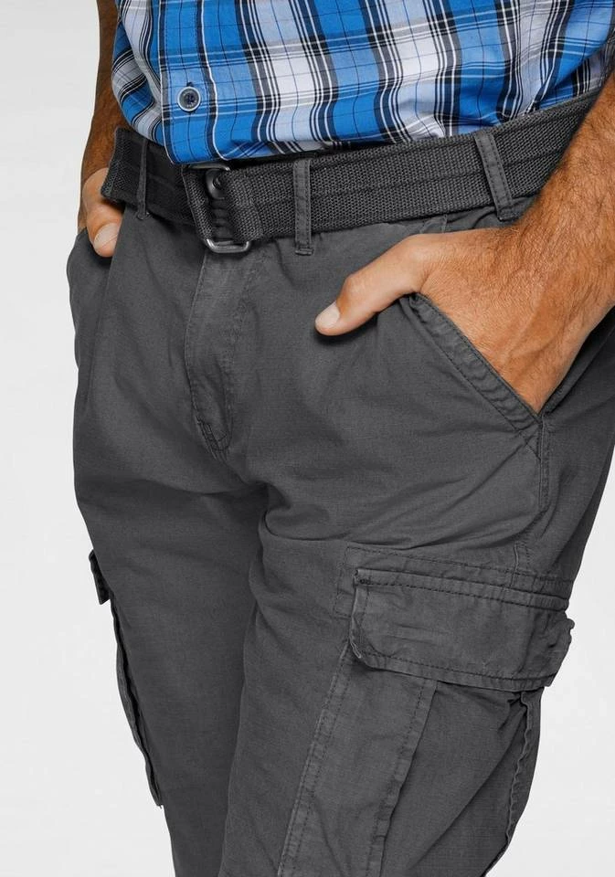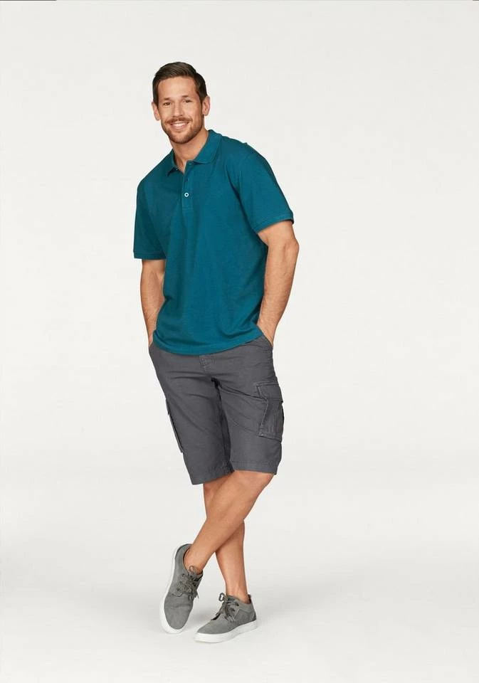 Markant und männlich präsentieren sich die coolen Cargobermudas von Man’s World! Dank der großen, aufgesetzten Cargotaschen ist der Name der Hose hier Programm. Hinzu kommen zwei praktische Pattentaschen auf dem Gesäß der knielangen Herrenhose. Das fein strukturierte Muster ergänzt das moderne Design. Das schmale Bündchen kommt nicht nur mit genialen Schlaufen daher, sondern auch mit einem trendigen, farblich passenden Gürtel. Tragen sich dank angenehmem Material besonders bequem in der Freizeit: die Cargobermudashorts von Man’s World!
