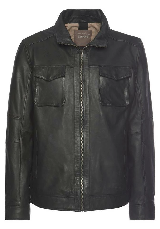 Schau dir die Lederjacke von Man's World mal genauer an. Der Kragen steht nach oben und liegt am Hals an. Die Jacke hat viele Taschen, in denen einiges untergebracht werden kann. Mit den Brusttaschen können kleinere Dinge gut verstaut werden und sind dadurch immer griffbereit.