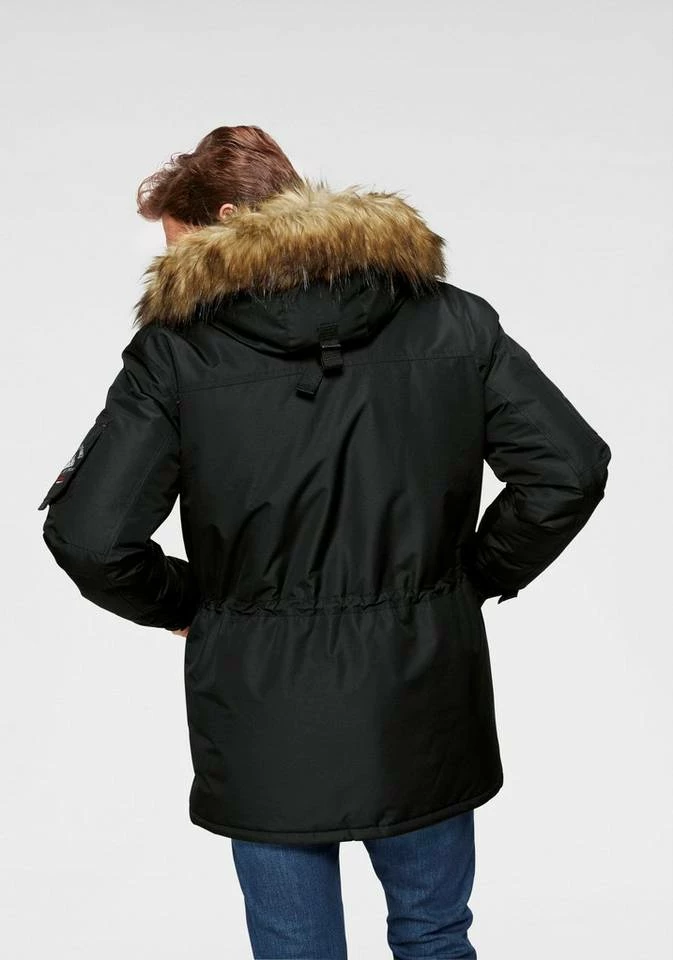 - Mit verstellbarer Kapuze und abnehmbarem Fellimitatkragen
