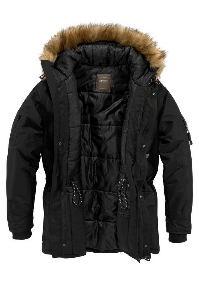 Der lässige Parka von Man‘s World vermittelt mit seinem kuscheligen, abnehmbaren Fellimitat an der verstellbaren Kapuze schon optisch Behaglichkeit. Tatsächlich trägt sich der Herrenparka in gefütterter Qualität und mit doppeltem Verschluss per Zipper und Druckknopfleiste angenehm warm. Der innen liegende Tunnelzug auf Taillenhöhe ermöglicht eine optimale Passform. Aufgesetzte Taschen vorn, Brusttaschen, eine Ärmeltasche und Innentasche runden den Tragekomfort der gerade geschnittenen Jacke gelungen ab. Mit ihrem entspannten Design passt sie toll zu allen Jeansoutfits. Ein Allrounder für die kalte Jahreszeit – der Parka von Man‘s World.