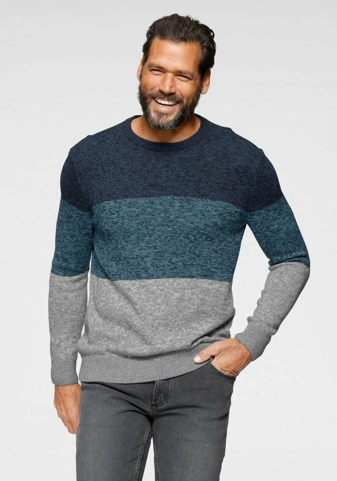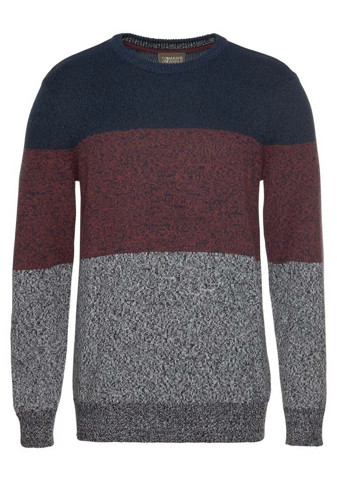 Tricolor mal anders: Der Pullover von Man’s World ist mit der angesagten Dreifarbigkeit im Colorblocking-Look sehr angenehm am Puls der Zeit. Angenehm ist auch die weiche Baumwollmischung, die – in Kombination mit dem geraden Regular-fit – für tollen Tragekomfort sorgt. Der Rundhalsausschnitt und die formstabilen Rippstrickbündchen rahmen den Pulli stilsicher ein. Mit einem untergezogenen Oberhemd oder einfach zu Jeans & Co. – der dreifarbige Pullover von Man’s World bereichert deinen Look.