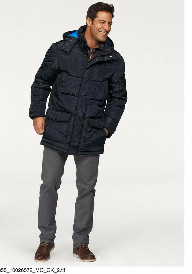 Man's World hat mit dieser Stepp-Langjacke ein tolles Teil kreiert, das Eindruck macht! Die kontrastfarben gefütterte, abnehmbare Kapuze ist der Eyecatcher an dieser Jacke, die mit den großen Patten-/Eingrifftaschen besonders praktisch ist. Die Druckknopfblende über dem Zipper und innen liegende Ärmelbündchen sorgen dafür, dass Kälte und Wind draußen bleiben. Details wie die Riegel am Ärmelabschluss und das kleine Logobadge runden das Design wunderbar ab. Mit ihrem wärmenden Futter und dem robusten Material verspricht die Herrenjacke optimalen Tragekomfort. Die Stepp-Langjacke von Man's World sieht einfach immer einfach gut aus!